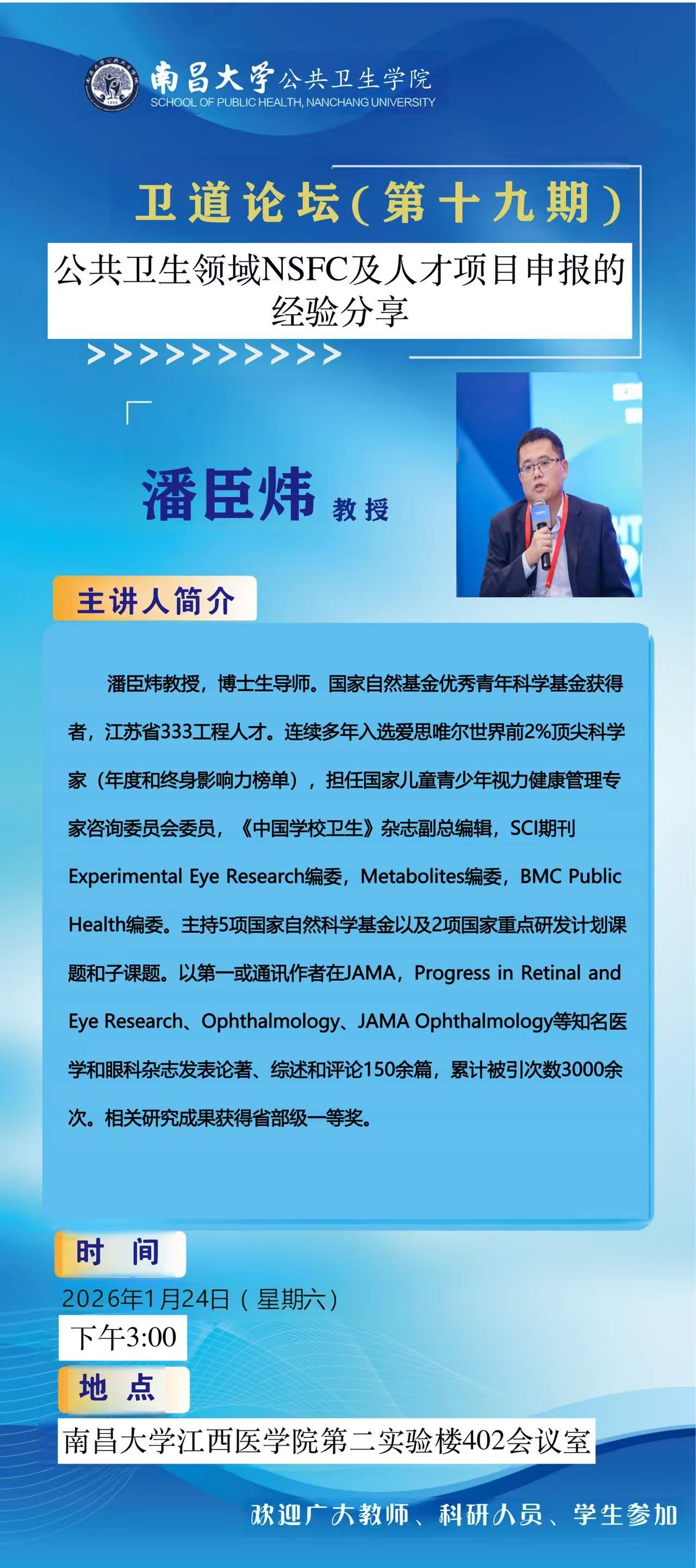 讲座内容:公共卫生领域NSFC及人才项目申报的经验分享