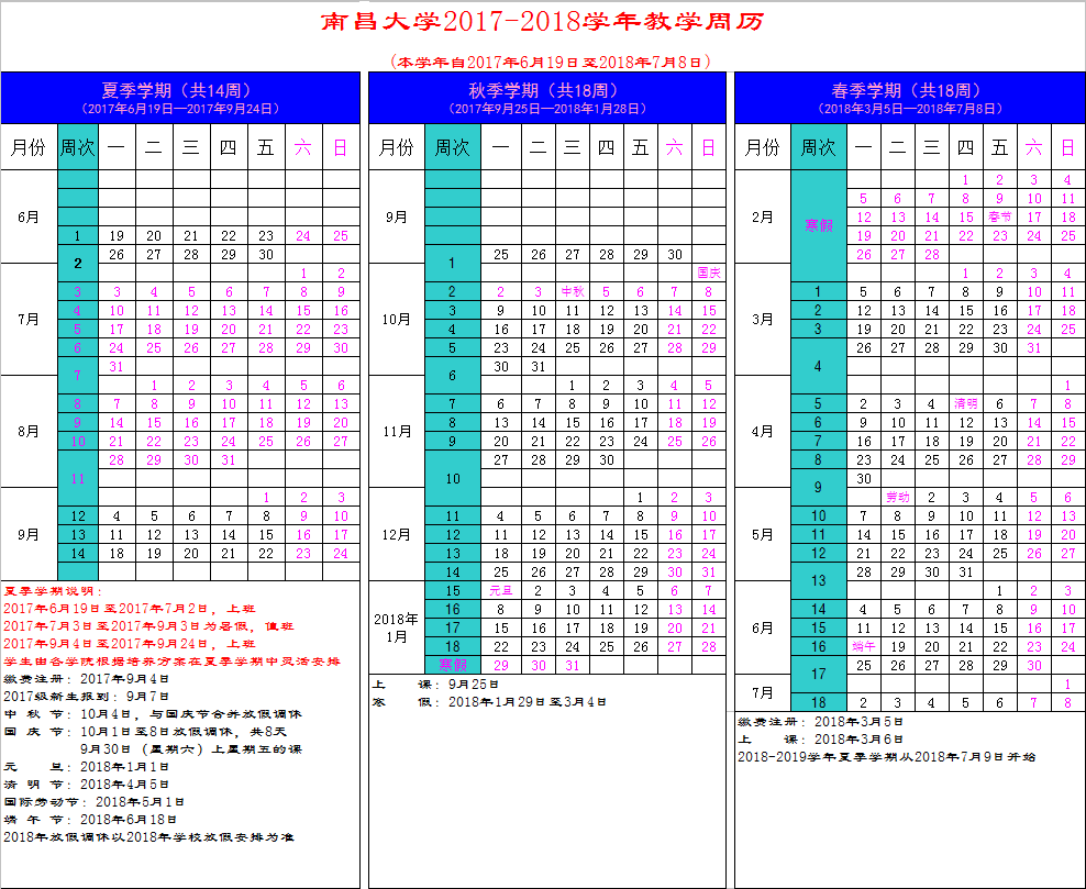 关于发布《南昌大学2017~2018学年教学周历》的通知
