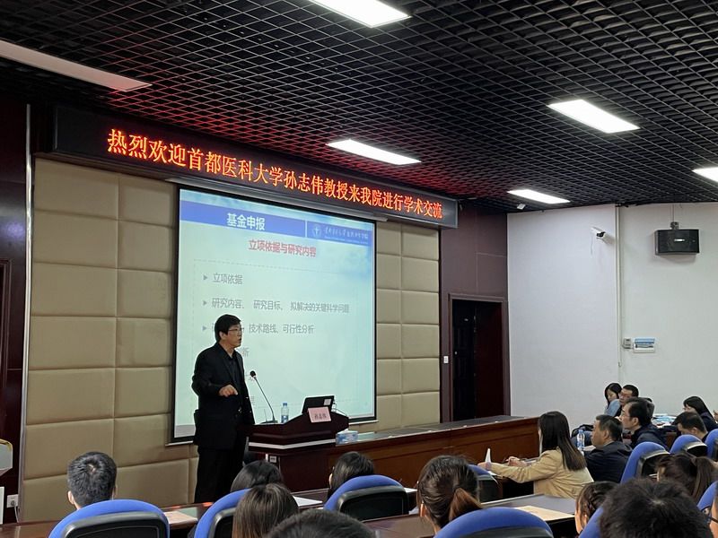 2020年11月13日上午,环境毒理学北京市重点实验室主任,首都医科大学公共卫生学院孙志伟教授来我院进行访问交流。来访期间,孙教授与学院领导班子会面交流,并为我院师生做了题为“国家自然科学基金项目申报若干问题”的专题讲座。