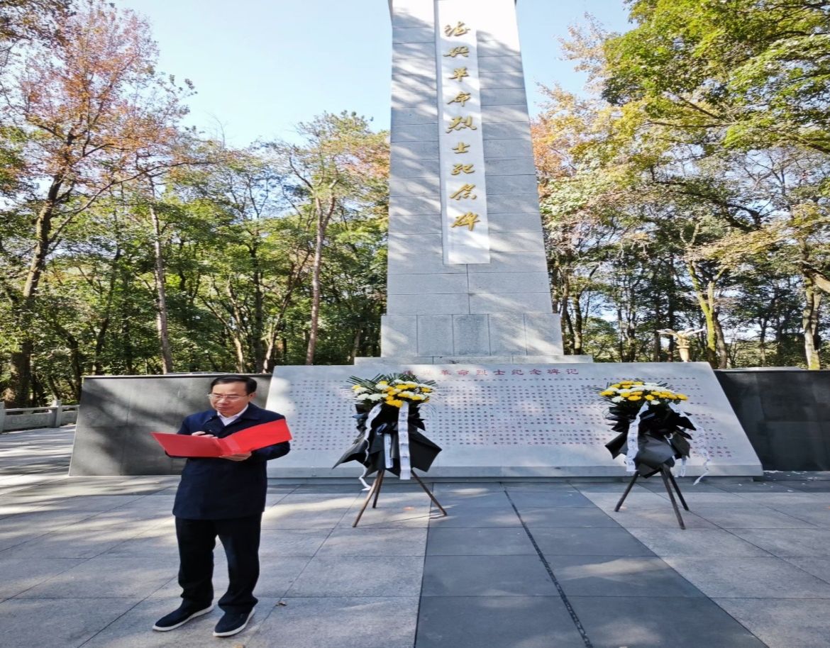 校党委常委、纪委书记万继锋发表致辞,号召大家要永远铭记革命先烈们的英雄事迹,不断加强个人党性修养,以实际行动回馈党和国家,回馈人民,传承红色基因,凝聚奋进力量。随后,大家在万书记的带领下迈着沉重步伐向英烈敬献鲜花,表达对英烈的追思和缅怀。