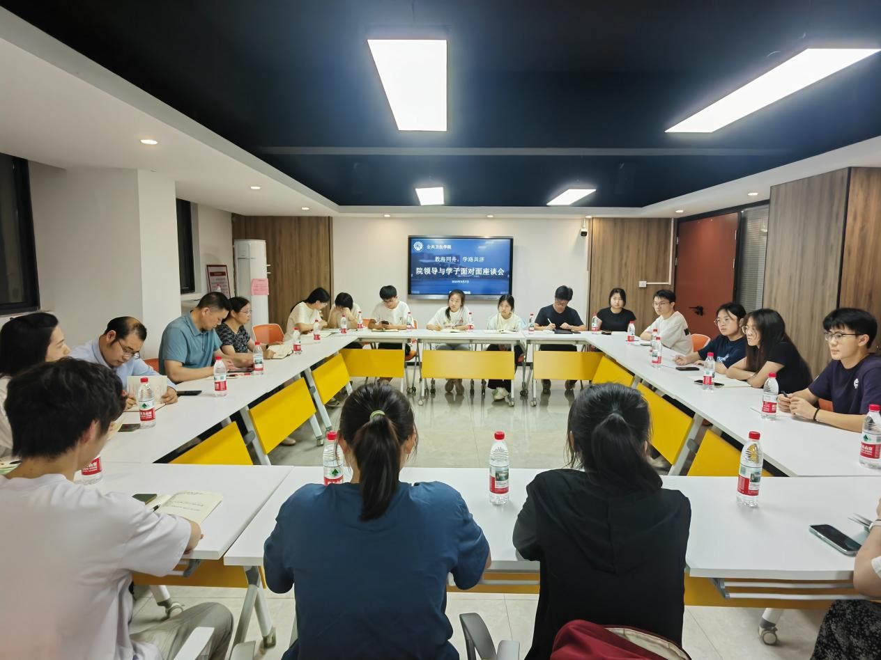 为深入推进教育教学思想大讨论,进一步落实“以学生为中心”的办学理念,畅通沟通渠道助力教学质量提升。5月7日晚,公共卫生学院在康健学生社区铸魂厅举办“院领导与学子面对面”教学专题座谈会。学院党委书记吴周民、副书记刘爱兰、教学副院长周繁坤、教务办负责人及学工办全体辅导员与20余名本科生代表展开零距离对话,现场气氛热烈。
