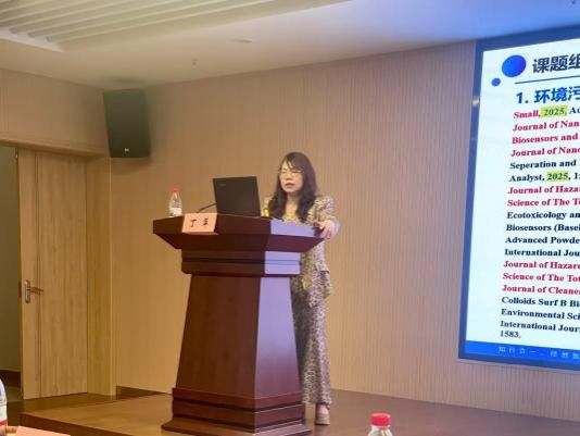 随后,中南大学的丁萍教授就《光/电生物传感技术在环境和健康监测中的应用》进行了深入的前沿知识分享。她首先介绍了课题组的研究方向,通过展示课题组的工作和成果,重点阐述了环境污染物检测、致病性微生物监测以及感染性伤口诊疗一体化等课题的选题、研究方法及实际应用成果。她的报告内容详实,结合具体案例,使参会者对光/电生物传感技术在公共卫生领域的广泛应用产生了深刻的印象。