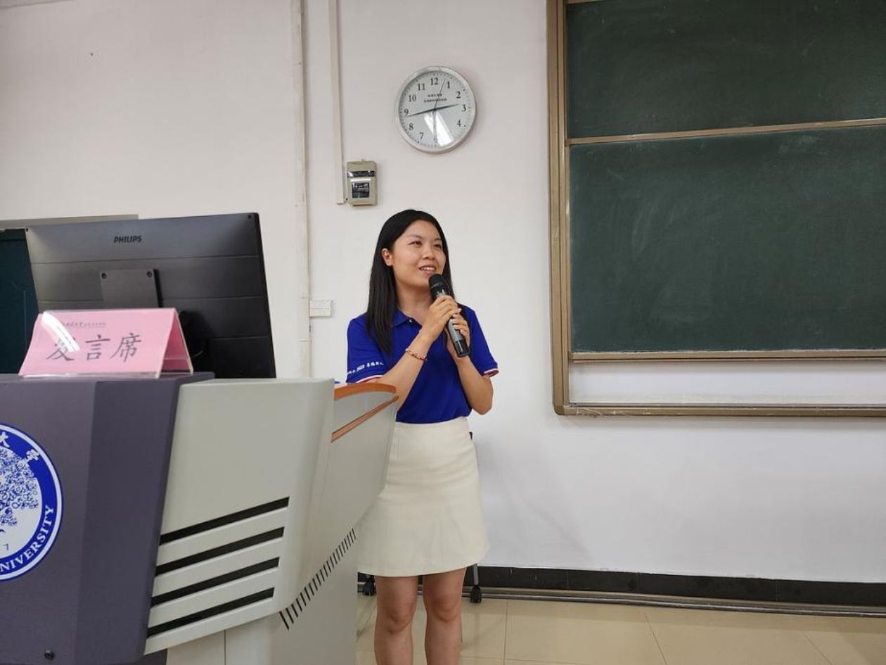 随后,教师代表潘瑶结合自身的体会向同学们分享了三点感悟。她指出,一是要“心怀‘国之大者’”,在时代浪潮中锚定人生坐标;二是要“格物穷理致知”,在学术殿堂里练就过硬本领;三是要“俯身实践躬行”,在服务社会中实现个人价值。