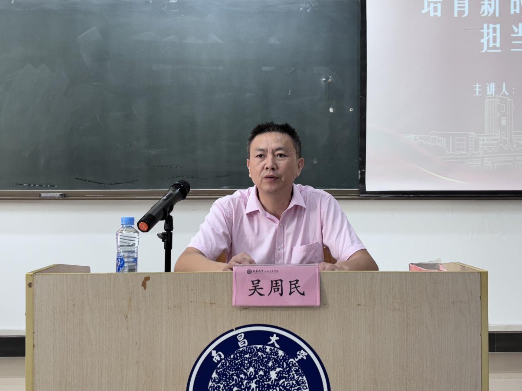 为引导学生坚定理想信念,勇担时代使命,9月19日,学院党委书记吴周民在前湖校区(南院)第二实验大楼101教室为2025级研究生讲授题为“培育新时代公卫人才,担当民族复兴大任”的专题思政课,辅导员李少阳及2025级研究生参加本次活动。