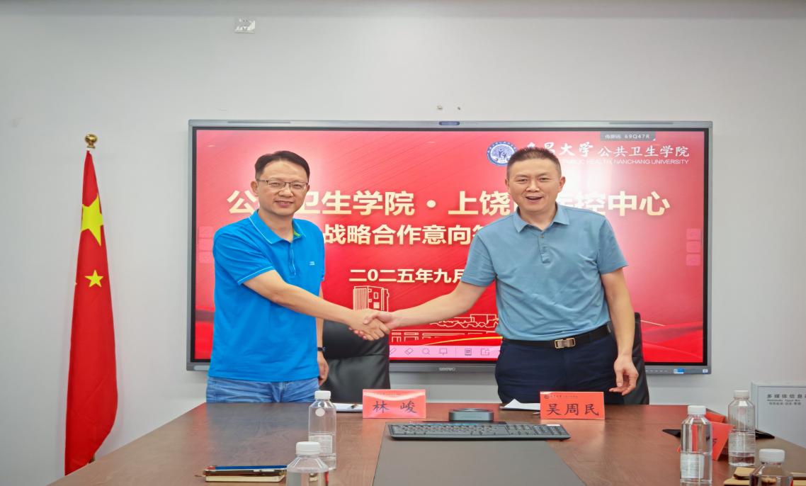 9月26日上午,上饶市疾病预防控制中心主任林峻一行到访我院,双方围绕深化院地合作、提升公共卫生服务能力与人才培养水平开展交流,并签署战略合作意向书。会议由我院院长高蔚主持,双方领导班子成员及各教研室主任共同参与。