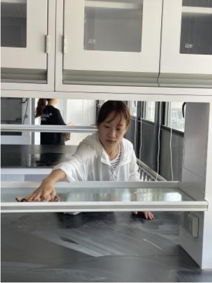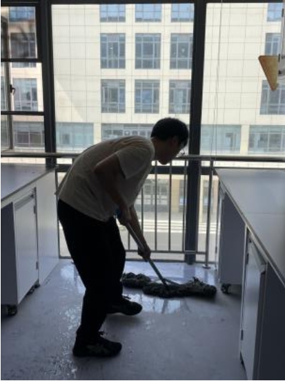 尽管当日天气炎热,但党员和志愿者们热情不减,早早来到活动地点。在简要介绍了本次活动的清洁范围和安全事项后,大家迅速投入到清洁工作中。在活动过程中,研究生第二党支部党员主动担当,研究生志愿服务队成员积极响应,大家分工明确,扫地、抹灰、清理杂物,不放过任何卫生死角,张大雷、李少阳和游铭等几位老师也一起参与到清洁活动中来,帮助同学们借用清洁和运输工具,协调实验桌椅运输与安置,现场氛围热烈而有序。