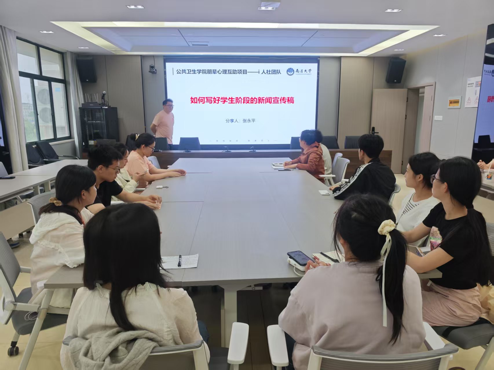 为了进一步加强学生干部工作能力,提升学院研究生会宣传工作水平,近日,我院组织开展“南小研”微讲堂活动。院研究生会主席张永平围绕“如何写好学生阶段的新闻宣传稿”进行了精彩的知识分享,学院党政办公室、科研与研究生管理办公室、学院本科生与研究生,以及焕奎书院新闻采编部等20余名师生参与了学习交流,本次活动由研究生辅导员李少阳主持。
