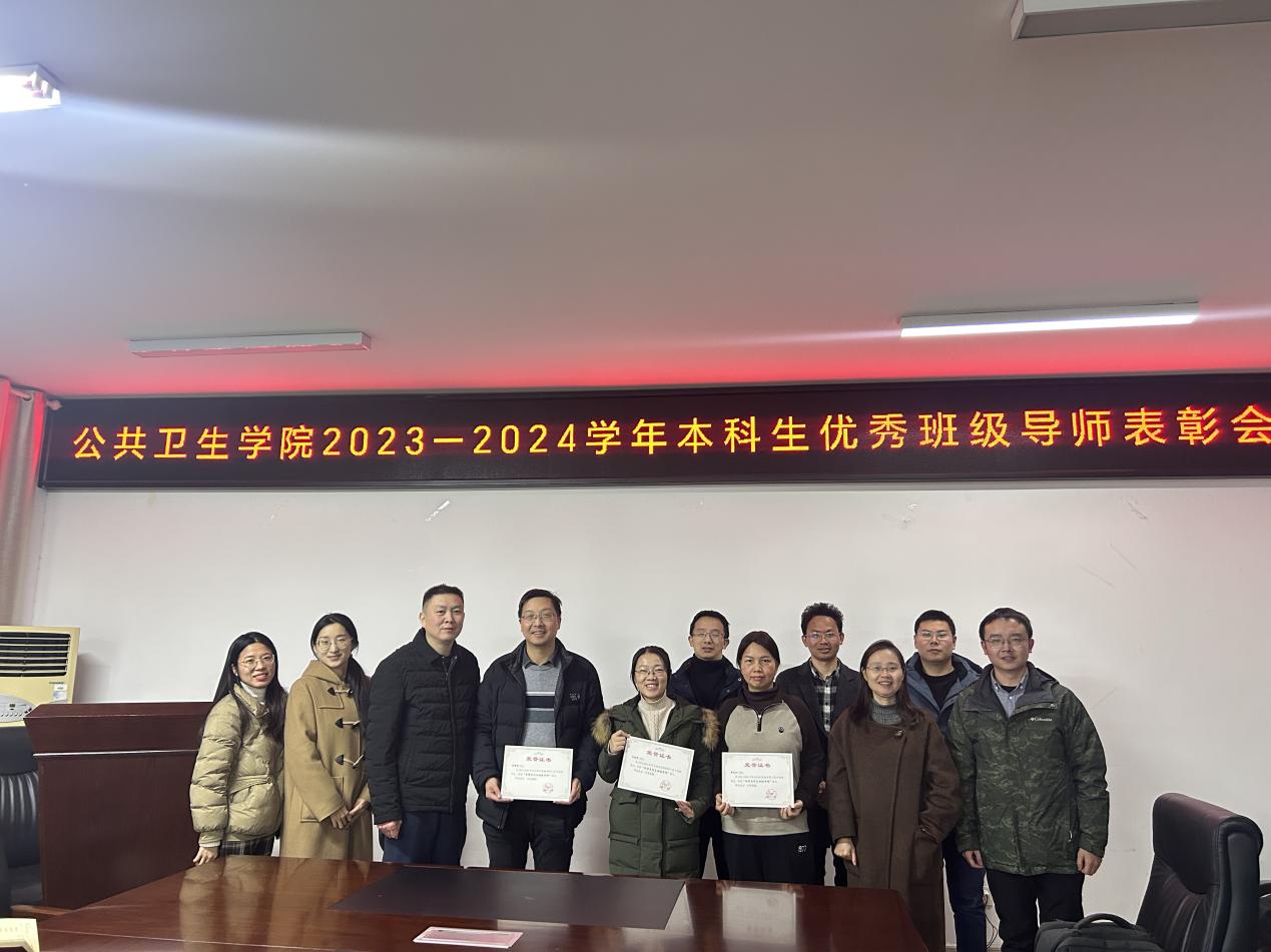 为树立好班级导师工作的榜样力量,充分发挥优秀典型引领作用。12月16日晚,公共卫生学院于前湖南院会议室举办“2023-2024学年优秀本科生班级导师表彰会”。院党委书记吴周民、副书记刘爱兰、学院各年级班级导师以及全体学工办辅导员参加本次表彰会。