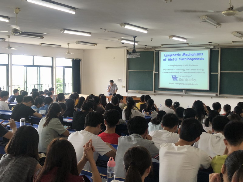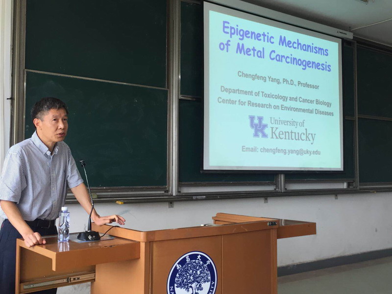 2018年9月12日至15日期间,美国肯塔基大学医学院马基癌症中心环境疾病研究中心杨成峰教授来我院进行访问交流。来访期间,杨教授与学院领导班子会面,在学校进行考察学习,并开展了题为“Epigenetic mechanisms of metal carcinogenesis ”的学术讲座。