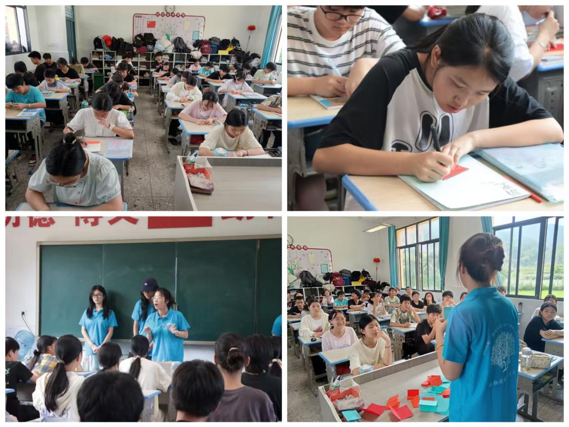 活动结束时,实践志愿者们集体为中学生送出美好祝愿并进行合影留念。告别时,同学们从教室追到走廊,在走廊上远远挥手:“哥哥姐姐们,再见”。当志愿者们回头,只见栏杆外踮脚的身影还在暮色里摇晃。