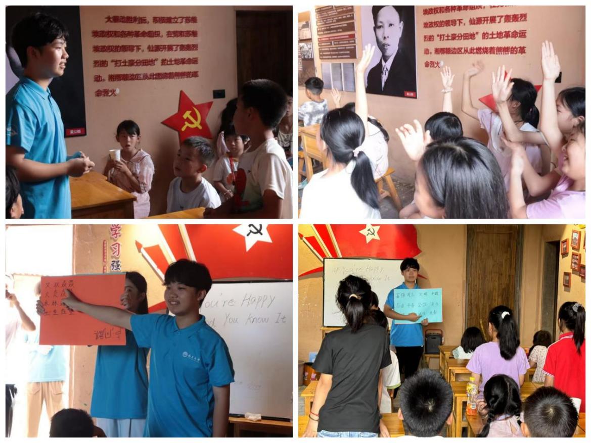 为拓展乡村留守儿童视野,给他们带来欢乐与陪伴,6月26日—29日,南昌大学“软公”联心暑期社会实践队用创意课桌布局与趣味课程,为孩子们打造了一场别开生面的暑期学习之旅。实践队打破传统课堂形式,采用混合式教学、互动教学与积分奖励机制,将座位设计成“四人聚学小组”与“互动围圈模式”;课程内容涵盖语文、数学、英语、艺术、爱国主题教育等多个领域,搭配手势舞教学、趣味运动会,让知识学习与欢乐实践完美融合。
