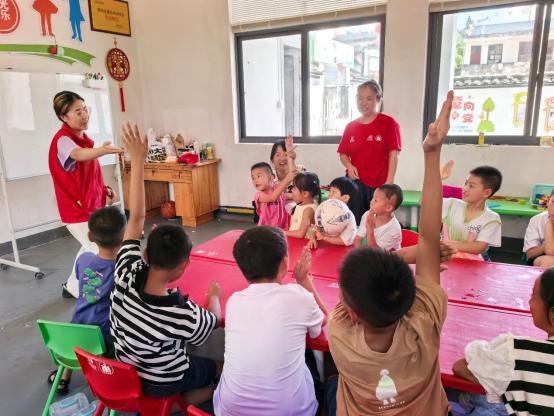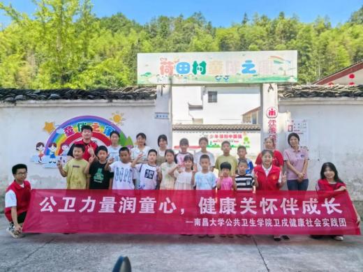 7⽉1日下午,南昌大学公共卫生学院卫戍健康社会实践队在团委指导老师王琪的带领下,顺利抵达上饶市婺源县荷田村。实践队于 7 ⽉2日走进同伴之家开启了—场充满爱与欢乐的陪伴之旅,用温暖与创意为孩子们的童年增添缤纷色彩。