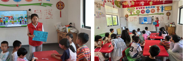 7月3日——7月5日,南昌大学公共卫生学院卫戍健康实践队为留守儿童带来了一场别开生面的“自护自爱小课堂”。实践队结合专业优势,精心设计了疾病预防宣讲、反诈知识宣传和儿童性教育科普三大主题课程,通过图片展示、视频播放、剧本演绎、课堂提问等多样化方式,让孩子们在欢乐中学习,在互动中提升自我保护能力。