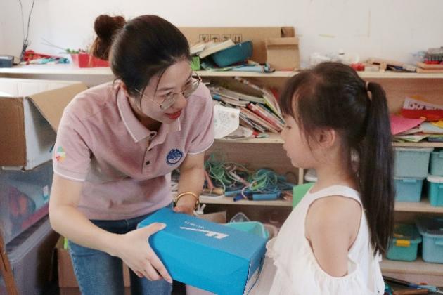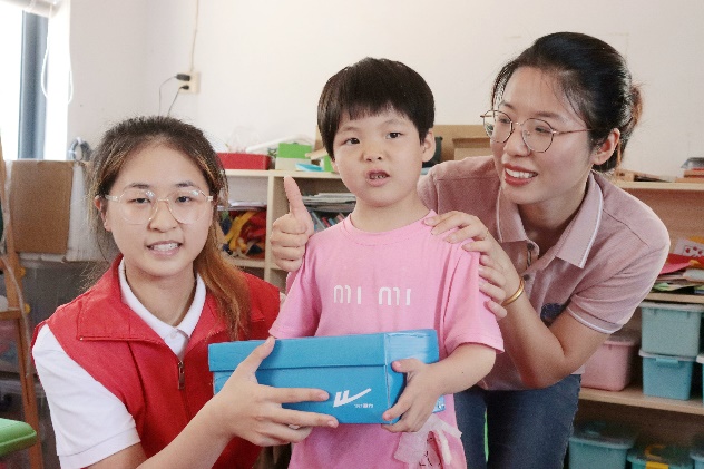 最后,实践队启动“步履不停、爱心传递”回力鞋捐赠仪式。当志愿者将一双双崭新的回力鞋递到孩子们手中时,小小的教室里瞬间沸腾起来。孩子们按顺序排好队,小心翼翼地接过鞋子,反复抚摸鞋面上的经典红色条纹,脸上绽放出纯真笑容。这些看似普通的回力鞋,承载的是沉甸甸的温暖关怀。