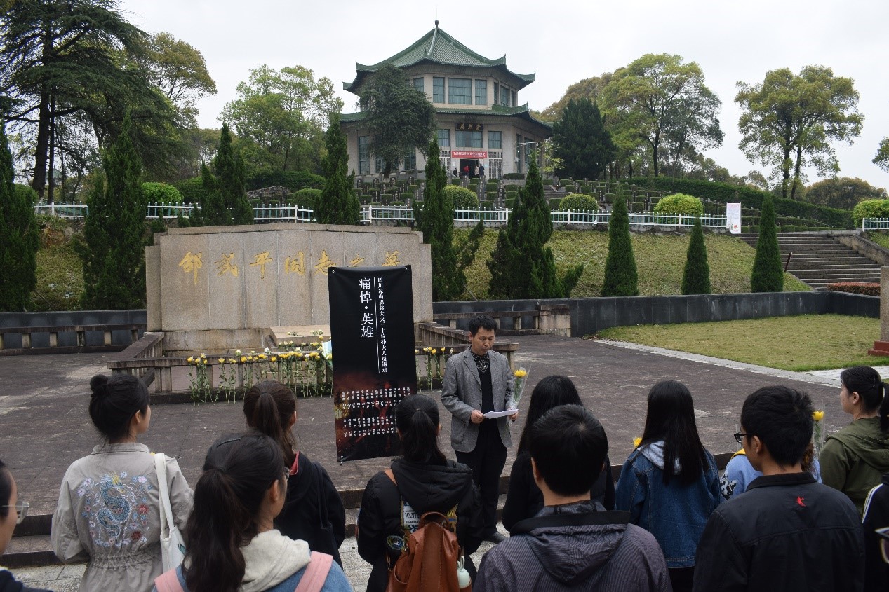 “生前不畏艰险献生命,身后铸造气节留魂骨”是对烈士们的真实写照。烈士陵园庄严肃穆,师生们来到邵式平墓前,在任老师主持下,面向墓碑三鞠躬,张曌慧同学代表学院师生献花,缅怀邵式平烈士,表达对邵式平烈士的敬仰之情。