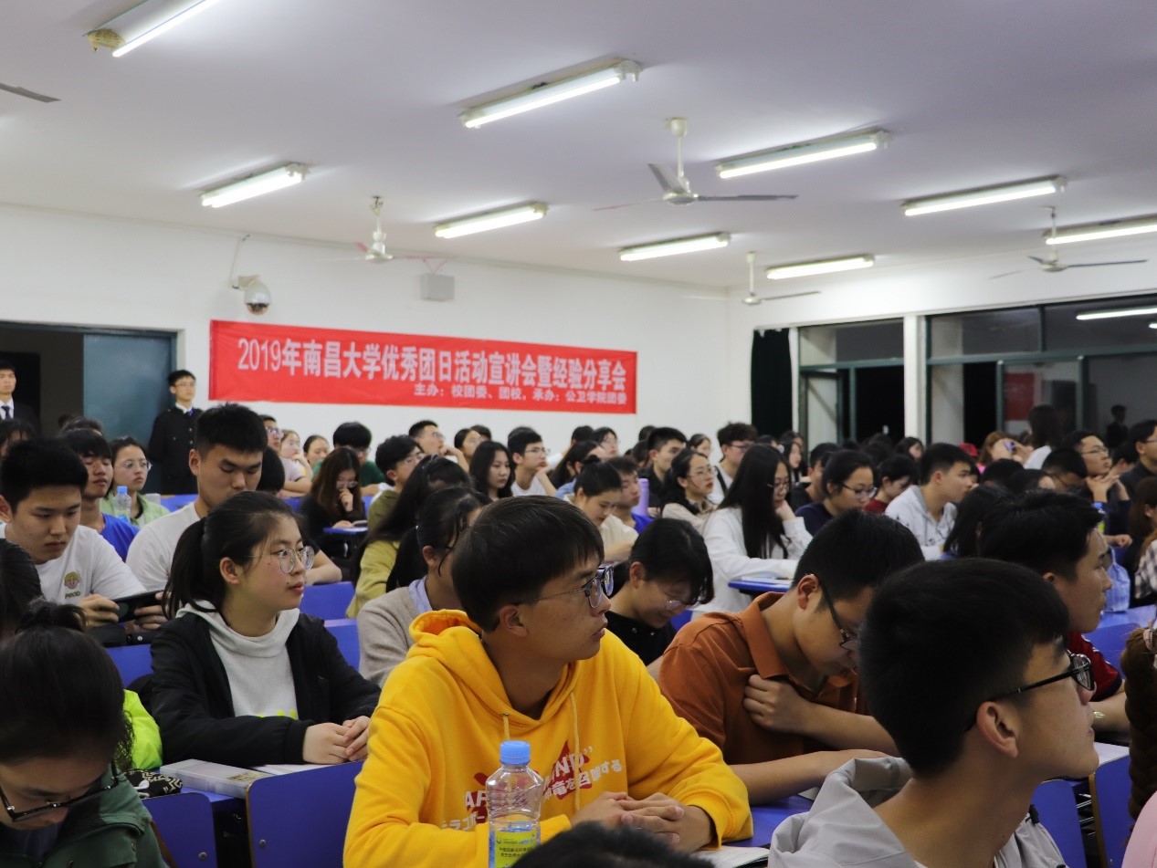 为进一步深入学习宣传贯彻习近平新时代中国特色社会主义思想,加强基团部组织建设,进一步提升基层团组织活力,2019年4月18日晚七点,医学部优秀团日活动宣讲会暨经验分享会于医学院第一教学楼402教室召开。活动由校团委主办,由公共卫生学院团委承办,药学院学工办杨政老师、公共卫生学院团委书记胡蓉老师、学工办王泉林老师以及团校副秘书长汪圣博、团校理论部部长范志伟莅临本次宣讲会,医学部17、18级各团支部代表与各学院组织部负责人亦到场聆听优秀经验。