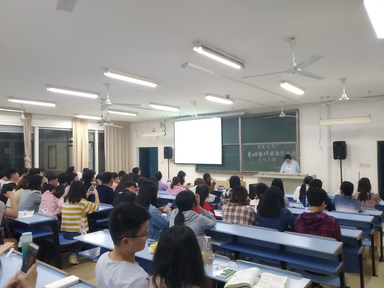 随后进行的各专业考(保)研经验交流会热闹依旧。谈及保研,各专业的学长学姐们无一不强调了解保研流程和获取信息的重要性,从三月份确定意向到夏令营的联系导师,以及随后推免资格确认等一系列过程都需要同学们的认真思考与仔细权衡。除此之外,英语的学习在整个保研过程中同样不可忽视,面试自我介绍与回答老师提出的专业问题时,出色的口语都会给导师留下好印象,大大提高自己的成功率。而对于考研的同学来说,专业课的复习则是最大的难关,尤其是进入第三轮复习的瓶颈期,部分同学因受挫选择了放弃,因此学长学姐建议,考研的同学们在初期就要培养好心态,不能因为短暂的迷茫而放弃努力。张成飞学长谈到,考研是与自己的斗争,无论是后期实习与考研时间如何合理分配,还是整个过程中遇到了各种困难,都需要大家耐心一次次克服,坚持自己的复习计划,星光不问追梦人,时光不负有心人。