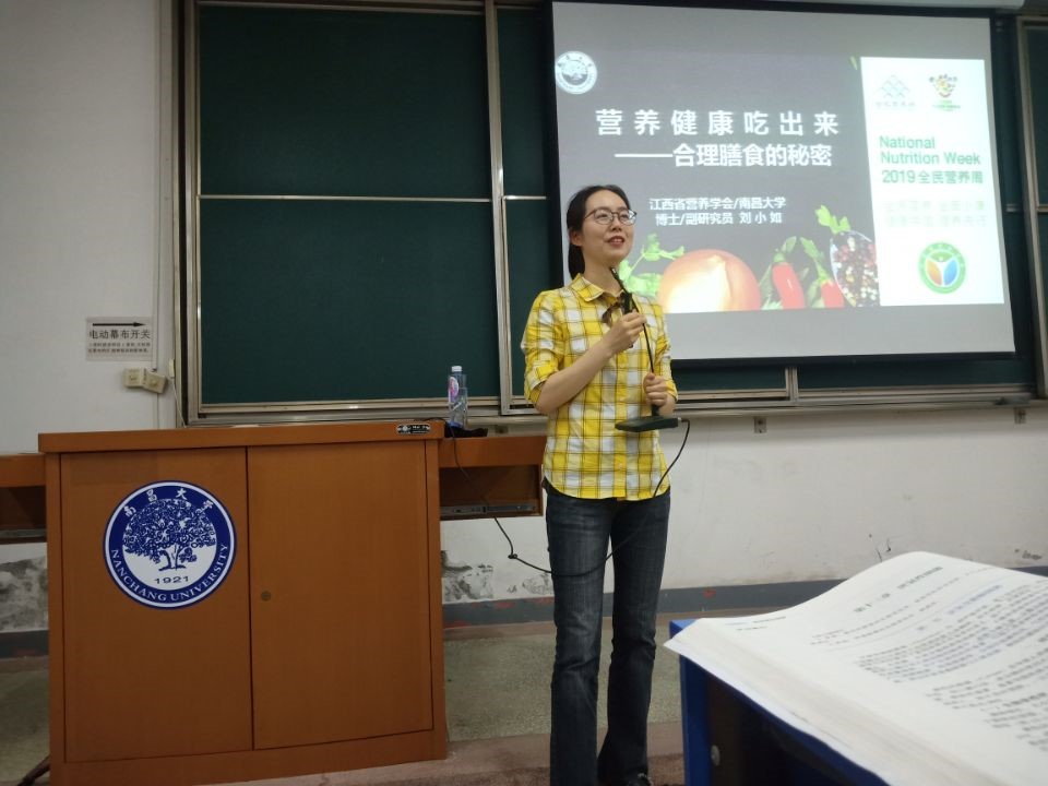为响应“健康中国,营养先行”的号召,2019年5月18日晚七时,以“营养健康吃出来——合理膳食的秘密”为主题,由公共卫生学院团委主办的第七期公卫讲坛于一教正式开讲。江西省营养学学会会员、南昌大学博士刘小如老师作为此次活动的主讲人,为同学们揭秘合理膳食。