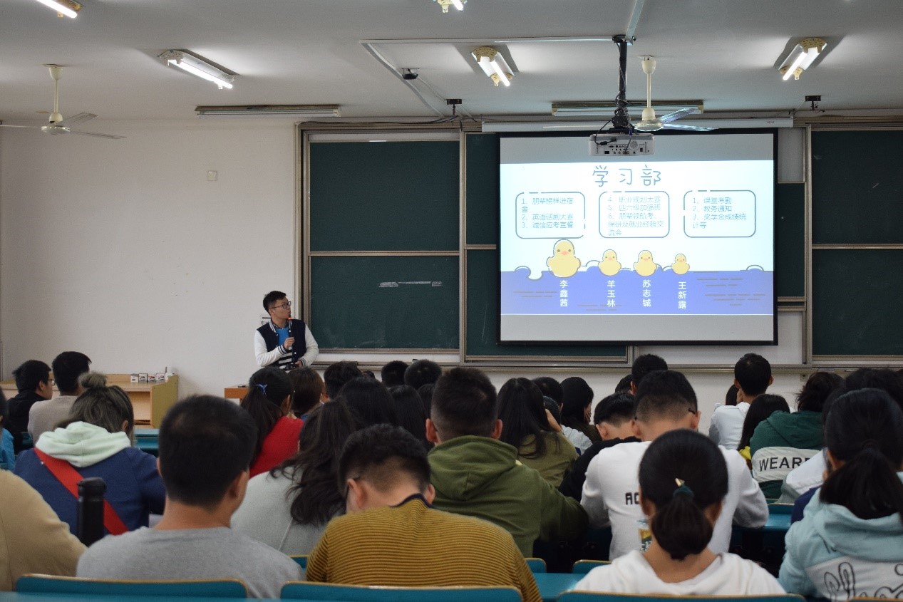 会议伊始,院团委副书记胡蓉老师代表公共卫生学院欢迎新成员的加入,并宣布第十七届团委学生会正式成立。随后,胡蓉老师宣读了第十七届团委学生会成员名单,在场人员均投以热烈的掌声。会议进入下一议程,第十七届团委学生会各部门负责人表态发言。各部门负责人们依次为新成员介绍部门职能及工作内容,同时也对去年的部门工作进行了简要总结,表达自己对所处部门未来的期许。会议进行第三项议程,团委第二副书记童彤发表新学期团学工作布置的整体汇报。她督促各部门积极联系,配合完成学院的各项工作,为学院争取荣誉。最后,党总支副书记樊国宝发表讲话。樊书记首先为我们介绍了习近平总书记在2018年9月10日全国教育大会上的讲话,由此对团委学生会这支崭新的队伍提出了以下几点希望:一、每一位学生干部在政治上严格要求自己,坚持以政治建设为统领,不断增强“四个意识”,坚定“四个自信”,坚决维护党中央权威和集中统一领导,旗帜鲜明,抵制各种歪风邪气,保持清风正气和良好形象。二、心系同学,牢记本会宗旨。三、品学兼优,恪守学生本分。四、过硬的工作作风,扎扎实实做事。最后,本次会议在全体人员热烈的掌声中迎来结束。