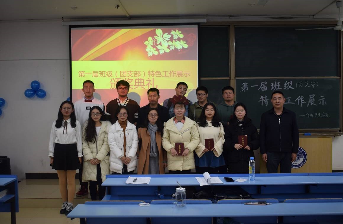 为加强班级和支部建设,推进班团一体化,打造青春活力、积极向上、团结有爱的班集体,12月5日晚,由公共卫生学院组织开展的第一届“班级(团支部)特色工作展示”评比活动在二教208教室举行。学院党总支副书记樊国宝老师、学工办主任刘爱兰老师、团委书记胡蓉老师、学工办王泉林老师以及各班(团支部)学生代表150余人出席了此次活动。