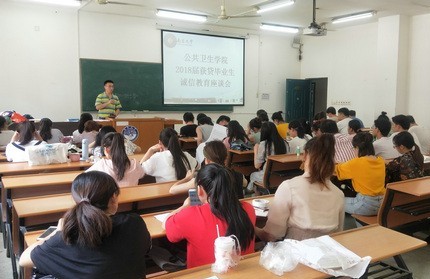 为保证获代毕业生按时还本付息以及解决一些还款利息方面的问题,5月15日12点半公共卫生学院于医学院第一教学大楼111教室召开2018年获贷毕业生诚信座谈会。此次座谈会由我校医学院助学贷款服务中心和公共卫生学院联合承办。